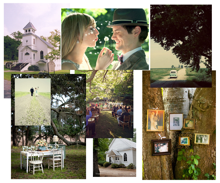 So, here’s my location inspiration board. It’s pretty basic. Wait ’til I get to clothes and flowers!!! I’ve already told Henry that I want to plan a dance party for my 30th birthday (2 years away) so that I can decorate and arrange flowers and design invitations all over again. 🙂