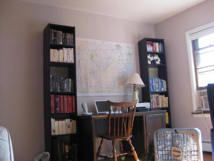 Here’s the result of my hard work on his desk area in recent weeks during my home organization blitz. I put up a map of he used during his hike across England – of the Lake District – and he actually broke into tears when he saw it. Also,last Saturday we cleaned like your anal-retentive Aunt Rita and I set up the organization system we bought at Ikea for the front and nursery closets. The room is totally different now – almost ready to start decorating for baby!! I can’t tell you what a weight it is off my shoulders to have a place for everything. Especially all of my little pieces I use for jewelry-making.