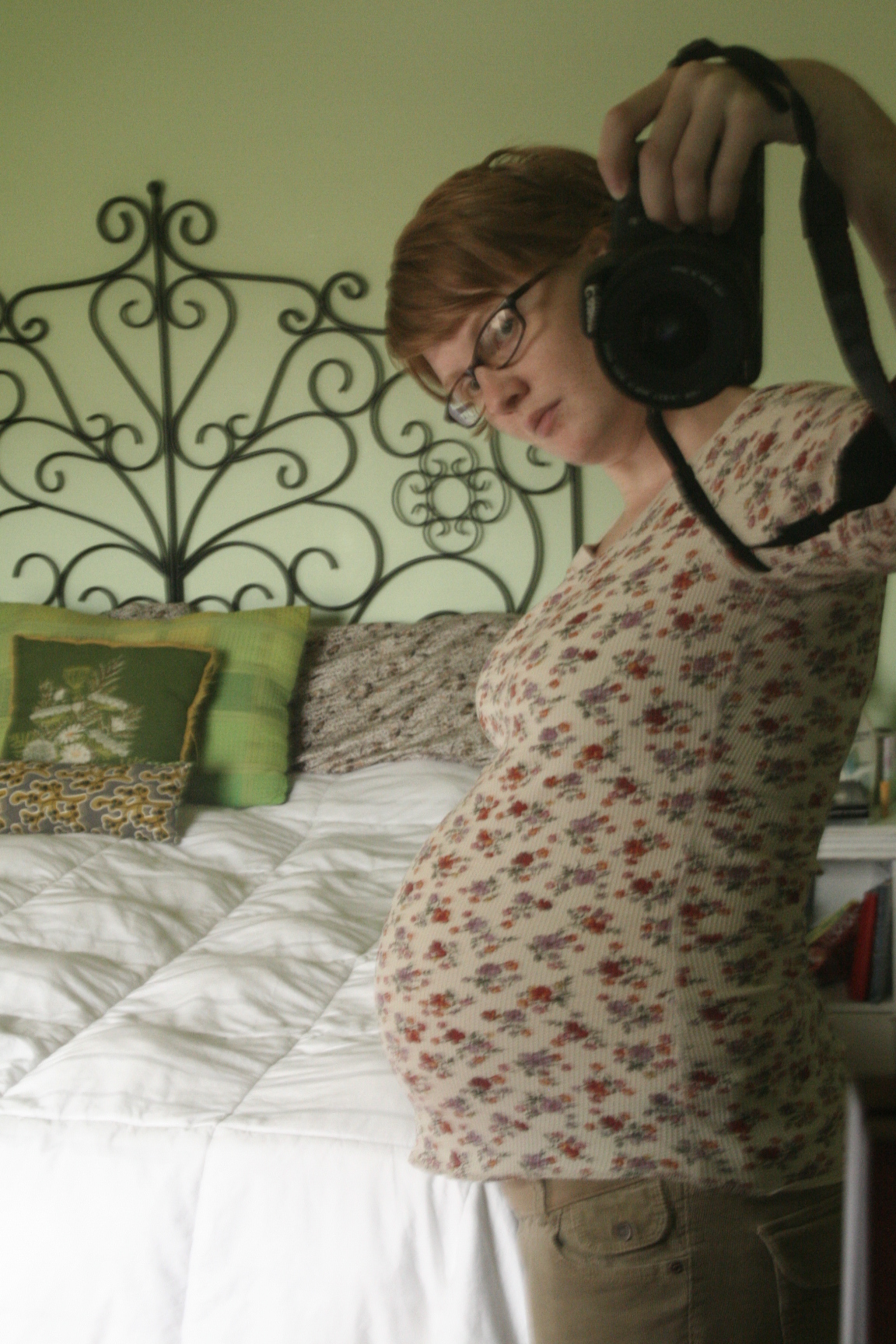 This is me, how I look today, right now. I’m a day shy of 32 weeks pregnant. I’ve gained 30 lbs. (that I know of) and TEN of that was in the last month. Yesterday I felt like the biggest boat in the stream, but it goes off and on.
