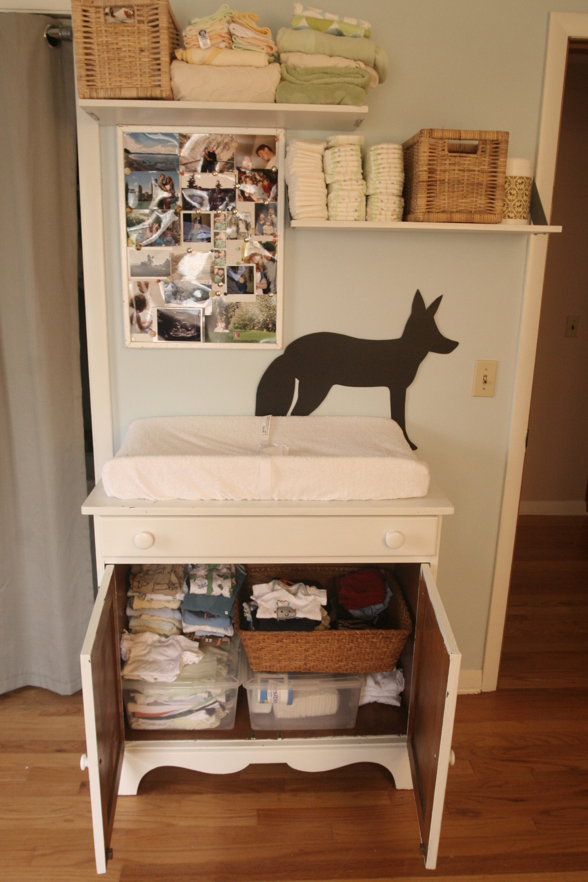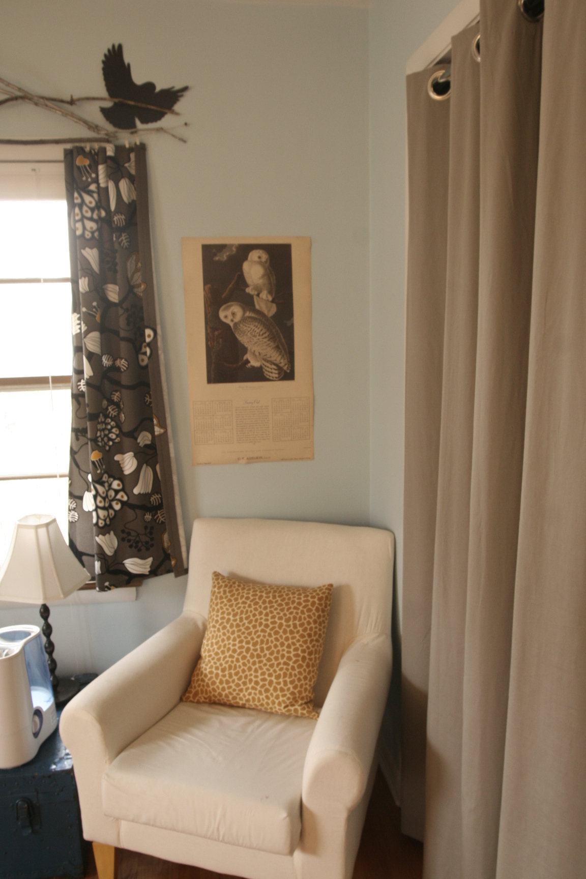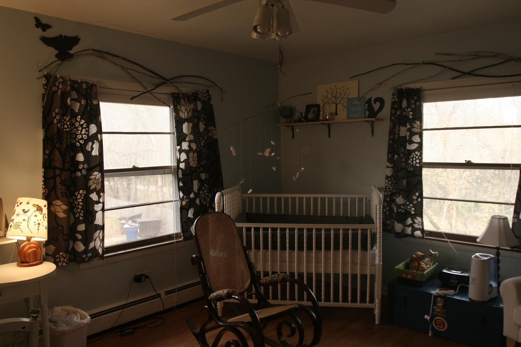 Anyway…these pictures aren’t that great. Add that to the list of things I don’t really care about anymore. It’s amazing how long that list has gotten in the last 6 months or so. I thought I cared about so many things. This nursery being one of them. True, I have spent SOME time getting it ready. Some of that was pure vanity, I’ll admit. Some of it was thriftiness: even my mediocre sewing skills will suffice in lieu of buying pre-made curtains. Free hutch from the side of the road? Yes please. Some of it, like the Hold Fast poster (inspired by Master and Commander/a sermon of Fr. Stewart’s), were just to celebrate our new life as a threesome. And for me to look at while I am breathing through contractions in this very room.