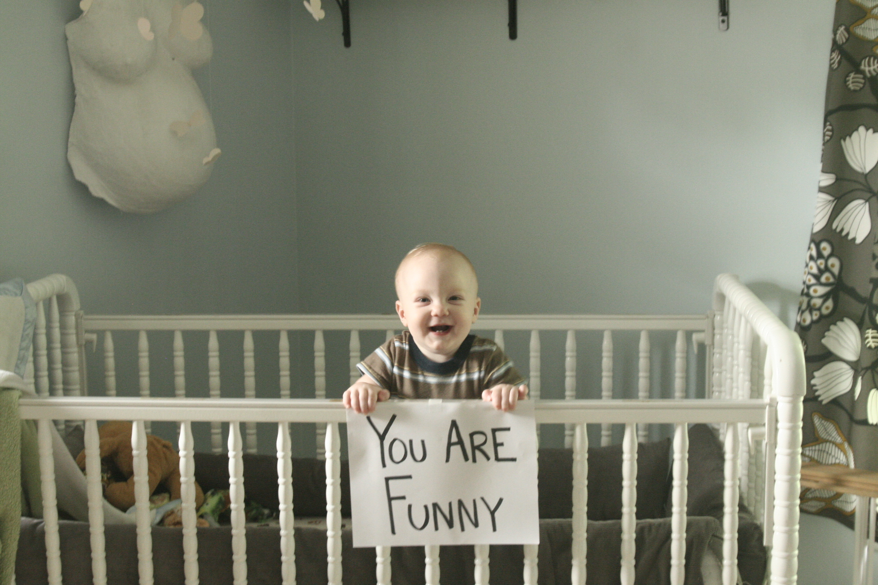 What a sweet laughing picture you got of him. You are a talented baby photographer and a sweet mama.